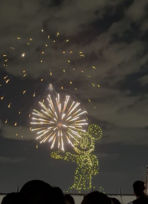 普通の花火大会ってだけでもテンション上がるのに、今回はドローンがディズニーとコラボしてて、夜空がまるでテーマパークみたいでした🐭🏰💞